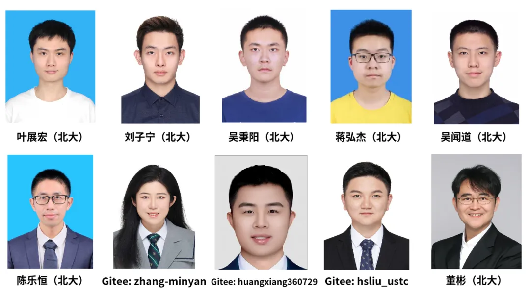 团队成员:叶展宏(北大),刘子宁(北大),吴秉阳(北大),蒋弘杰(北大),吴闻道(北大),陈乐恒(北大),Gitee: zhang-minyan,Gitee: huangxiang360729,Gitee: hsliu_ustc,董彬(北大)