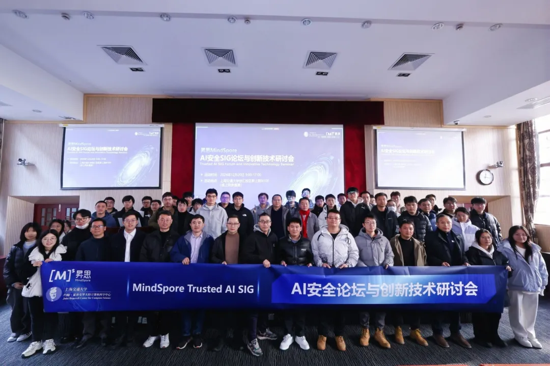2024年12月20日,昇思AI安全论坛与创新技术研讨会在上海交通大学成功举办,10多所知名高校的100+学子参与现场学习与交流,3000+来自全网的学习者参与了线上学习与交流。