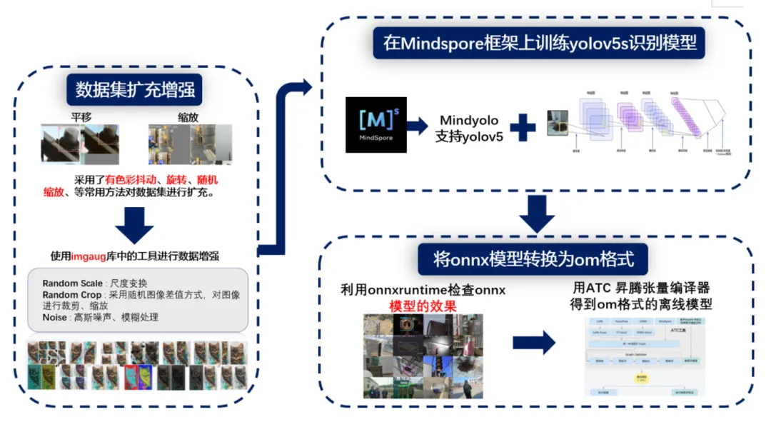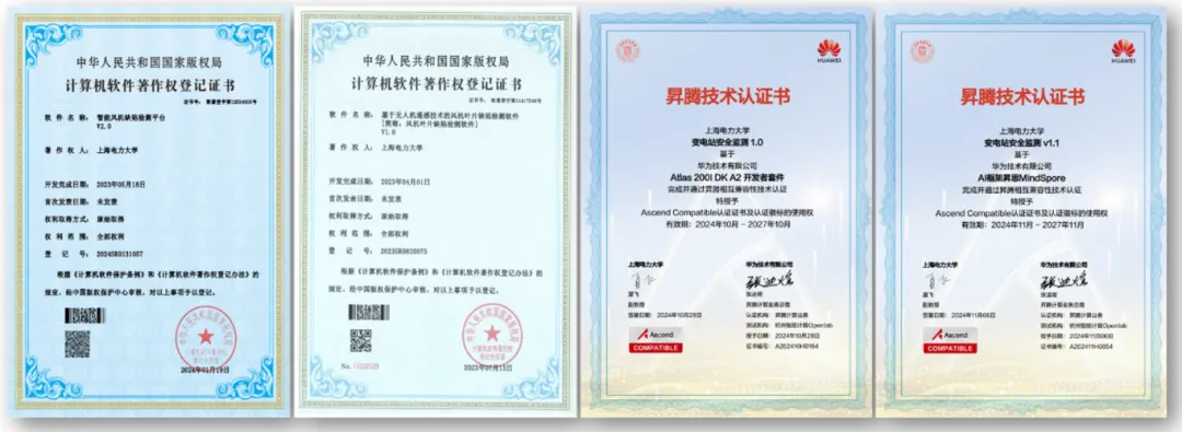 此次通过与上海昇腾人工智能生态创新中心产教融合,基于上海电力大学能源电力特色学科互织互融以及国家电网培训中心的特色国网实践教学成功实现教学转化。通过在CANN架构上部署深度边缘模型,利用昇思MindSpore框架自动微分和自动并行的特性以及Atlas 200DK A2高效的推理性能对变电站设备实现了自主智能巡检,开发了专属的电力设备缺陷运维大模型,显著提高了检测效率和准确性,有效降低维护成本和安全风险。目前已申请了6项发明专利并撰写了两篇SCI论文,其中包括SCI一区论文一篇。