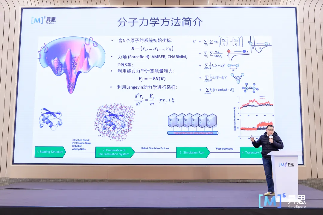 近日,昇思人工智能框架峰会在北京成功举办。在AI for Science创新论坛中,深圳湾实验室博士后研究员刘许晗发表了题为《MindSpore SPONGE:人工智能时代下的分子动力学模拟》的演讲,分享了人工智能与分子动力学模拟交叉领域的最新研究成果。