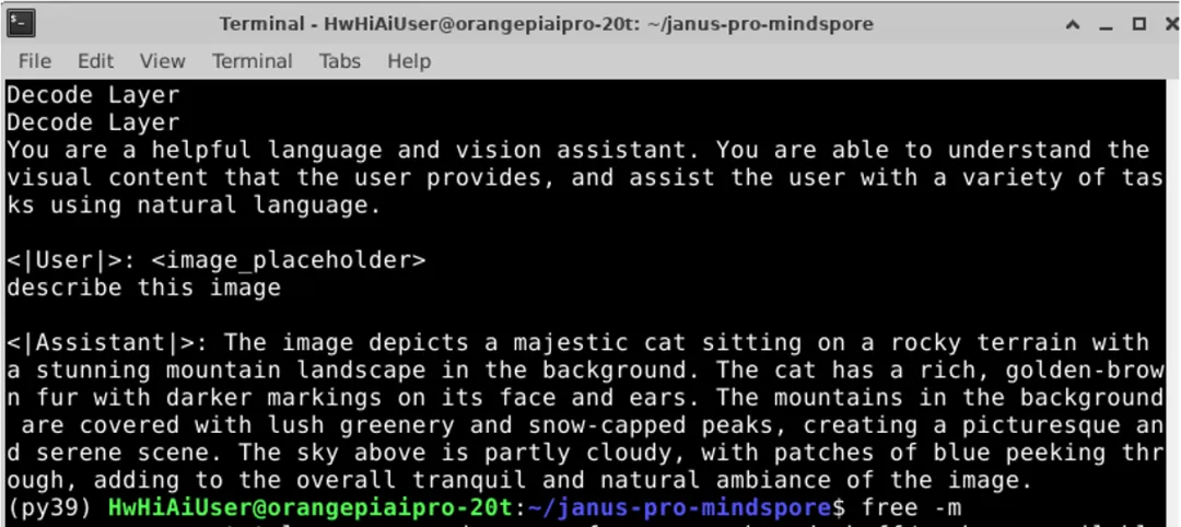 为了让更多开发者能够快速上手,我们基于MindSpore AI框架和MindSpore NLP套件在香橙派AI pro(20T)24G开发板上,部署了DeepSeek-Janus-Pro 模型,希望通过我们的努力,能够为 AI 社区的发展贡献一份力量,让更多人能够参与到 AI 的浪潮中来,以下是详细的DeepSeek-Janus-Pro部署教程。