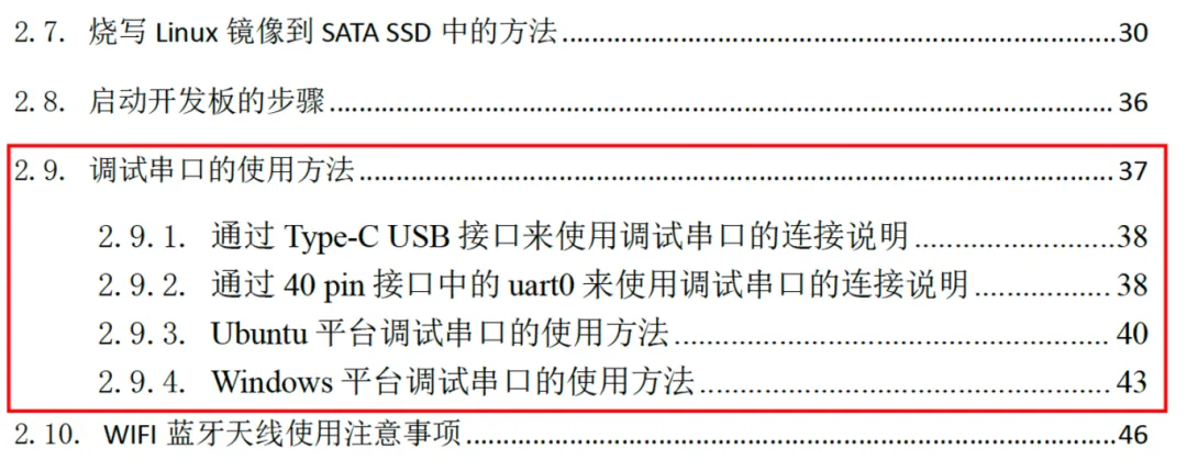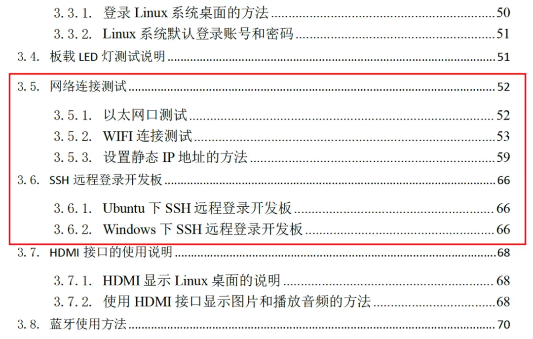 开发板启动后,开发板支持多种连接方式,如串口连接、网线连接等,请参考用户手册的2.9、3.5、3.6节,如下图所示,选择其中的一种方式连接开发板。