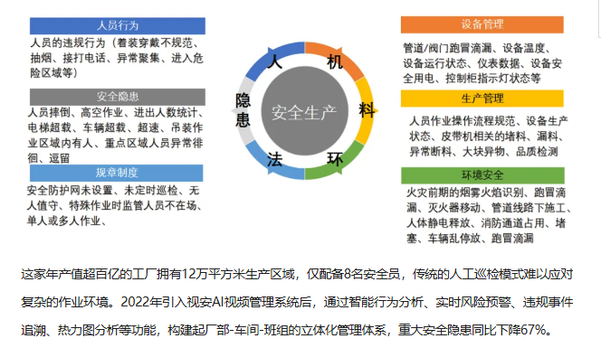 通过部署AI视频风险识别系统,我们的安全巡检效率提升了10倍,管理范围从重点区域扩展到全厂覆盖,真正实现了风险管控关口前移。" 倍特威视分享了某汽车制造工厂的数字化转型案例。
