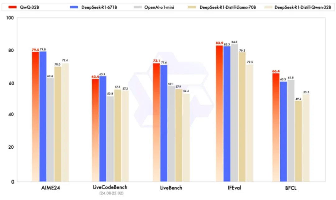 QwQ-32B是阿里云于2025年3月6日发布的人工智能大型语言模型。这是一款拥有 320 亿参数的模型,其性能可与具备 6710 亿参数(其中 370 亿被激活)的 DeepSeek-R1 媲美。