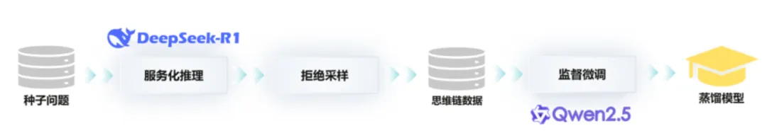 DeepSeek团队通过使用R1模型生成60万条CoT推理数据,蒸馏了Qwen和Llama这样的开源模型,成功验证了这一迁移能力。
