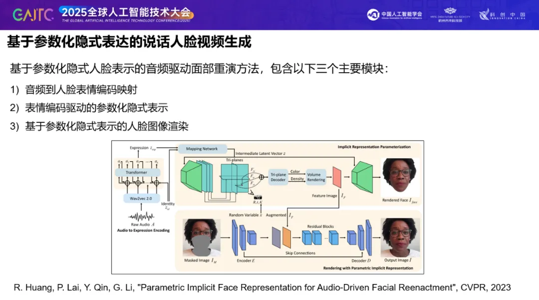 中山大学计算机学院教授、国家优秀青年基金获得者李冠彬团队主导的《基于参数化隐式表达的数字说话人视频生成》