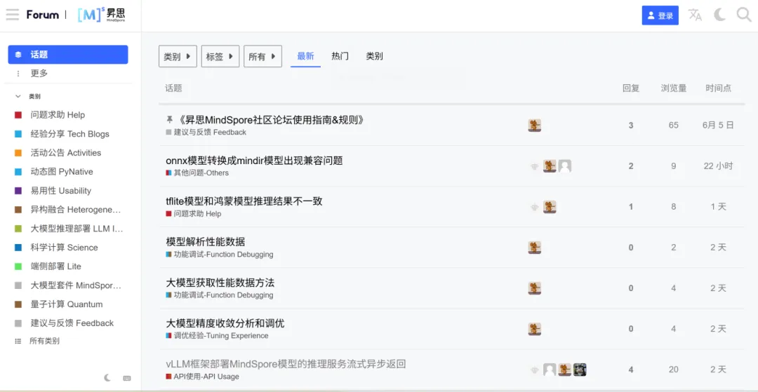 官网是开发者了解昇思MindSpore的第一站,MindSpore技术论坛将深度集成官网信息,文档、安装指南、咨询全在这儿。开发者遇到问题即可论坛直接发帖,无需再通过第三方平台获取答案。