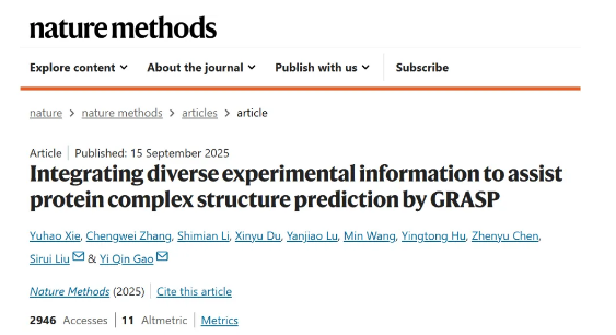 2025年9月,国际顶级期刊《Nature Methods》发表了来自北京昌平实验室、北京大学前沿交叉学科研究院等团队的重磅研究成果——蛋白质复合物结构预测模型GRASP。这项研究由高毅勤教授团队领衔,联合北京大学生命科学学院、化学与分子工程学院及华为技术有限公司昇思MindSpore AI4S团队共同完成,论文的发表标志着中国科学家在AI+生物计算领域取得突破性新进展。