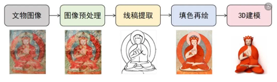 针对川西南纸本经图模糊、破损等问题,基于图像生成技术的快速发展,以及对文物保护和修复工作的迫切需求,本项目设计了图像预处理、线稿提取、填色再绘和3D建模的技术路线来进行数字化图像修复。通过 昇思MindSpore 全场景AI框架的高效算力支持和算法优化能力,结合多模态生成技术,实现了从图像预处理、线稿提取、自动填色到三维建模的全流程智能化重建。