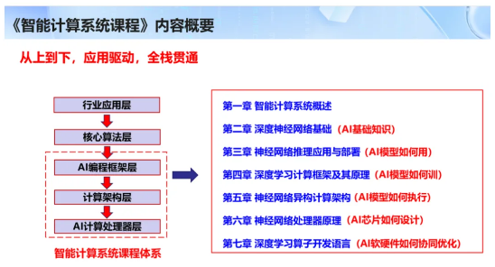 这套内容完备、体系丰富的课程广受认可。其配套课件成功入选智能基座优秀课件奖励计划,相关实验案例也斩获了第八届全国计算机类课程实验教学案例设计竞赛二等奖。朱光辉老师还受邀在第六届中国计算机教育大会 “智能计算系统” 论坛,就昇腾 AI 产教融合实践作专题报告。