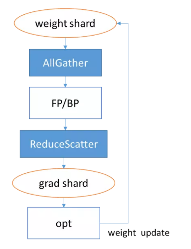 优化器模型并行将优化器涉及到的参数和梯度切分到多台设备上。以 Adam 优化器为例,其内部可能有多份与权重同等大小的「动量」需要参与计算。在数据并行的情况下,每个卡都拥有完整的「动量」,它们在每个卡上都重复计算,造成了内存及计算的浪费。通过引入优化器并行,每个卡只保存权重及「动量」的切片,能降低每个卡的静态内存及提升计算效率。