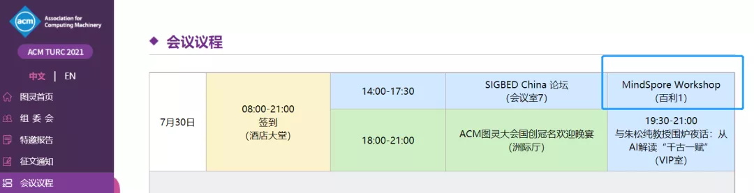 **7月30日(本周五)**我们将在ACM 中国图灵大会(ACM TURC 2021)的分论坛开展MindSpore Workshop!