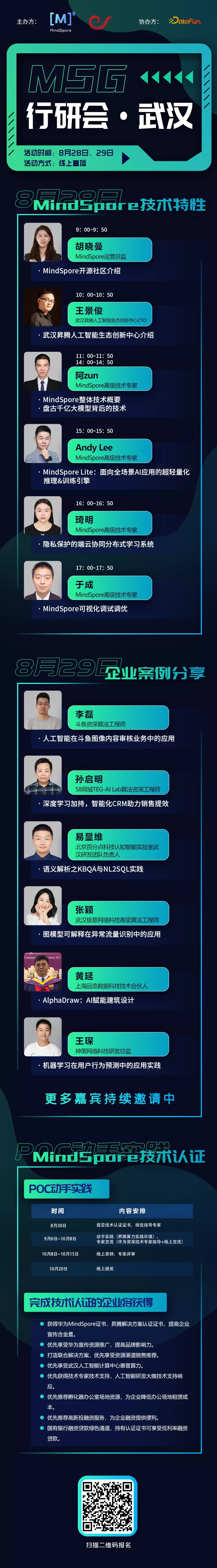AI浪潮下,每个产业都会迎来新的机会!MindSpore携手武汉昇腾人工智能生态创新中心,即将于本周六(8月28日)在武汉发起首场MSG行研会·武汉AI行业线上交流会。邀请了58同城、百分点、极意、品览、神策等多位行业领衔人与MindSpore高级技术专家线上授课,武汉人工智能生态创新中心算力与技术全场景落地支撑企业完成商业落地。