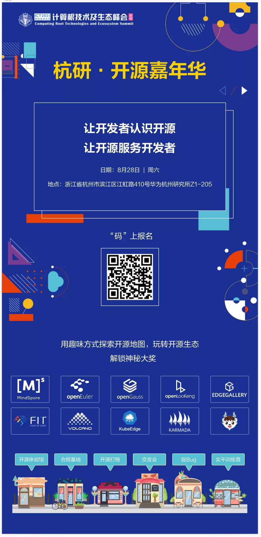 当下火热的开源项目 MindSpore、openEuler、openGauss、openLooKeng、KubeEdge、Volcano、Karmada、EdgeGallry等将汇集杭州,走进杭州研究所,参加项目路演、沙箱实验、积分闯关赛、赢得神秘大礼~