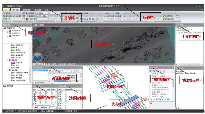 高精度地图生产软件拥有影像、点云与采集车动向联动的可视化界面,拥有地图编辑、动向编辑、激光测图、保密数据处理、POI关联、影像标注、数据自动检查、要素符号化等功能,支持高精地图、导航地图、门前三包、实景地图等不同应用类型的数据生产。