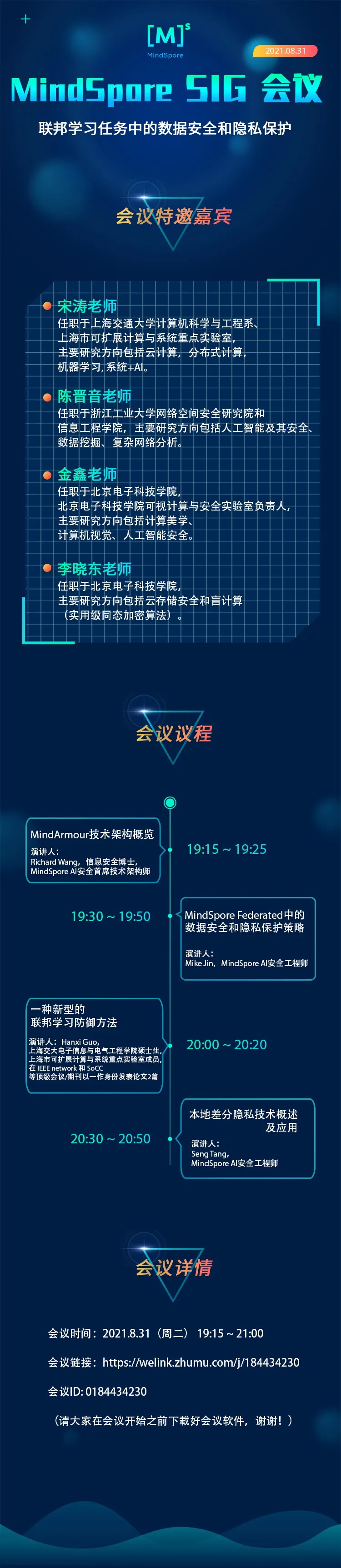 ](https://mindspore.cn/federated/))了解MindSpore已经开源的联邦学习框架。会议结束之后,我们会把视频上传至MindSpore的bilibili官方账号。
