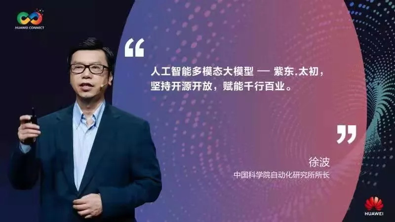 自动化所所长徐波在华为连接大会上介绍业内首个千亿级三模态大模(请在微信内打开进行观看)