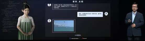 自动化所所长徐波与自动化所基于紫东太初打造的三维虚拟人“小初”进行了跨时空对话,展示了不同模态间的互相转换和生成实例,涵盖视频生成、视频描述、图像生成、智能问答、语音识别等多个功能。徐波同时介绍了紫东太初大模型在纺织工业生产线中的实际应用案例。在纺织厂织机运转的过程中,紫东太初融合多模态信息,可以通过语音识别来判断断纬和断经,通过视觉识别来判断布匹的缺陷,展示出强大的综合研判能力和广阔的应用前景。