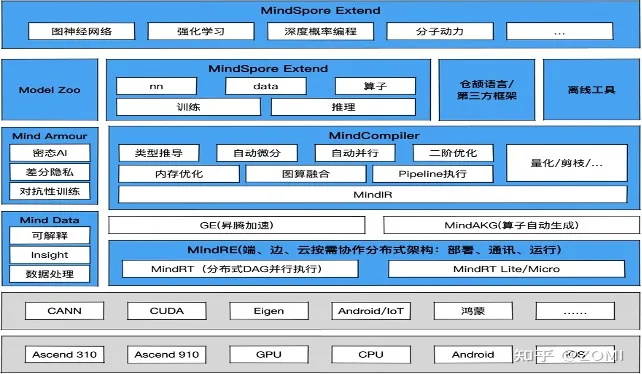 昇思MindSpore是华为开源的一款全场景AI框架,旨在提供友好设计、高效运行、简捷部署的开发体验,目前应用于医疗、金融、科研等多个领域,提供面向端边云多种场景的主流硬件支持,并针对昇腾硬件平台提供深度优化能力。昇思MindSpore着力构筑面向全球的人工智能开源社区,推动人工智能软硬件应用生态繁荣发展。