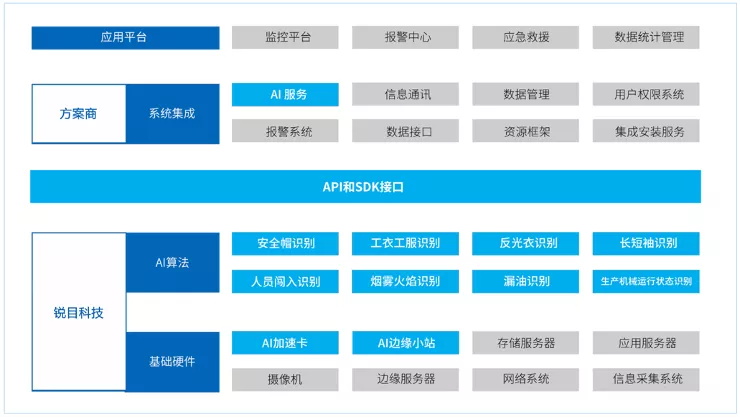 基于该解决方案,可以为建筑工地、石油化工、电力、水泥、钢铁等行业的集成商、集团智能化部门及监管部门提供高性价比的算法算力一体化方案,并提供软件开发SDK接口,让智能化升级的部署联调更加方便快捷。