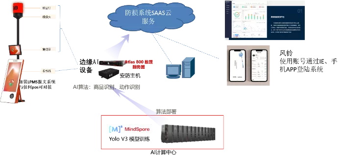 微晟在加入MindSpore社区后,基于MindSpore框架自主与研发智能防损系统,面向线下商超现有的自助收银和人工收银场景,结合华为云能力,微晟的智能防损系统需要提供快速、低成本的防损功能。
