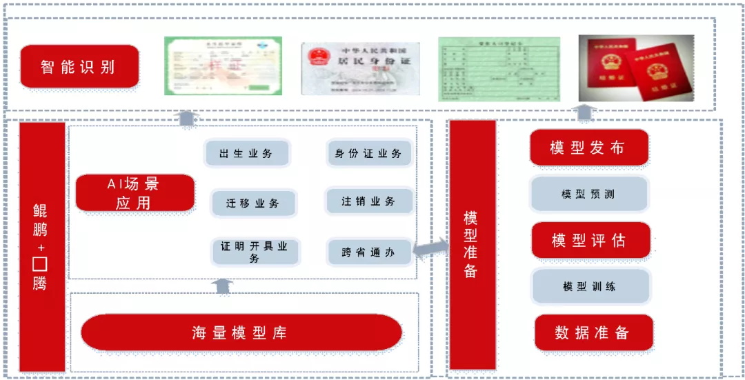 北大高科在加入MindSpore社区后,基于MindSpore框架自主研发省级人口大数据综合业务系统,通过图像分类、目标检测技术,可以智能实现业务办理图像信息编码和传输,身份证业务的制证打包功能,实现数据的编码和变换压缩。并可以对出生业务、身份证业务等文本纠错,准确识别输入文本中出现的拼写错别字及其段落位置信息,针对性给出建议内容。