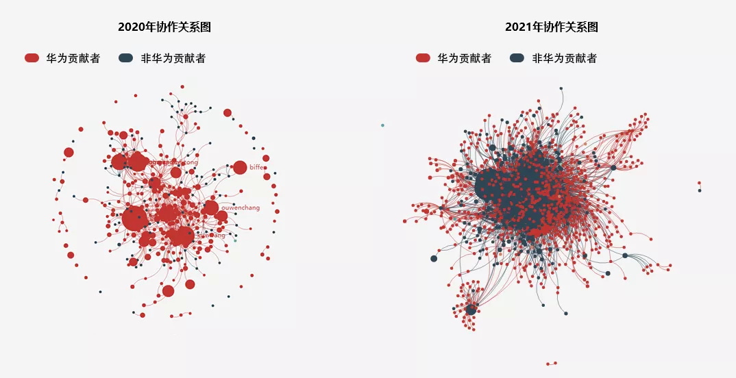 2021年开启SIG会议25场,较去年增长10倍,社区协作关系在2021年孤立个体减少,实现了紧密相连。