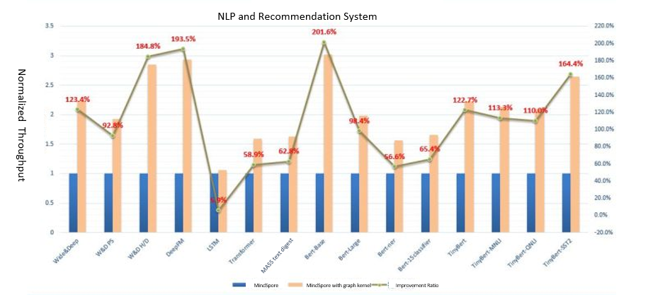 In the GNN network of MindSpore 1.6, on the other hand, Apollo increases performance by three to four times. It is worth mentioning that index-based operator fusion in irregular memory access is implemented based on the characteristics of the GNN network and Apollo multi-layer fusion architecture. Additionally, the unique execution pattern of GNN model tasks can be automatically identified for fusion and kernel-level optimization. Compared with other frameworks that optimize specified common operators, MindSpore is more scalable. It can cover all current operators in the framework and as well as new operator combinations. It is also without doubt that the Apollo framework has good scalability. We performed extensive verification on more than 50 networks. The average Apollo performance improved by 96.4% for NLP, 136.6% for recommendation systems, and 30.7% for CV.