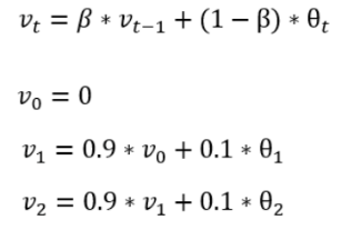 v__i indicates the local average, namely the temperature of a certain day. In calculation, v__t can be considered as the daily temperature of 1/((1 – β)).