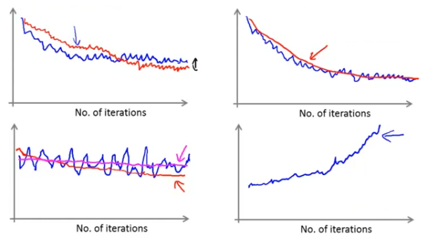 If you get a graph that is increasing (the lower right figure), you need to use a smaller learning rate α.