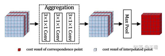 Although adaptively inserting sample points increases the sampling density, it inevitably leads to a linear increase of the cost volume. In addition, the shapes of the cost volumes generated by the main view and different auxiliary views may be different. To control the size of the cost volume, the EAM uses deep convolution to extract simple information from the cost volume after interpolation. Then, the EAM selects max pooling with different window sizes and steps based on interpolation conditions to down-sample the cost volume so that the cost volume changes back to the shape before interpolation. The dynamic pooling of the EAM aggregates the cost information of the interpolation point in the cost volume depth dimension to the original point.