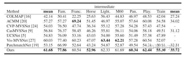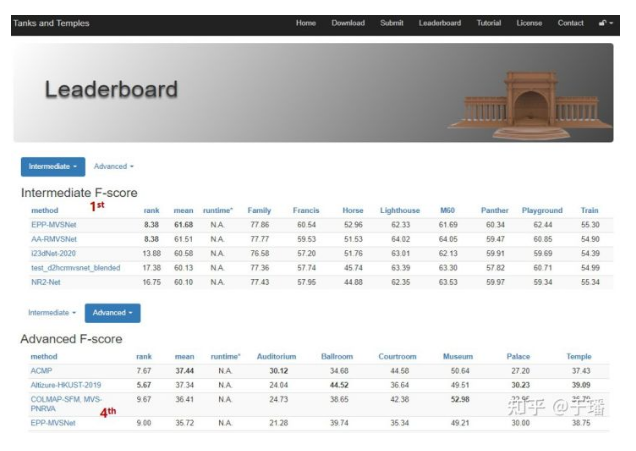 By March 18, 2021, EPP-MVSNet ranked No. 1 in the Tanks & Temples intermediate benchmark and No. 4 in the advanced benchmark.
