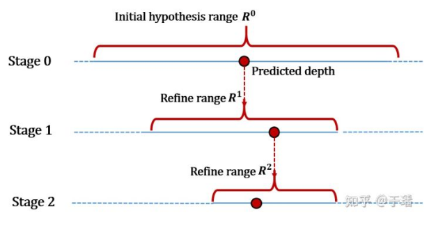 Multi-view Stereo (MVS) is an algorithm for predicting an image depth through pixel-level dense matching with images taken from a multi-view angle and a camera pose and by using spatial geometric relationships, and is widely applied to AR/VR, gaming, and surveying. Since MVSNet[1] was proposed, the learning-based method of constructing multi-view to cost volume based on fronto-parallel and differentiable homography proves its advantages in more and more public datasets. However, these methods are greatly affected by the depth assumption in terms of prediction precision and efficiency. When the depth range is large, it can be difficult to balance calculation amount and precision. Later, CasMVSNet [2] raises a multi-stage pipeline for predicting depth initially with a low-resolution cost volume at the coarse stage and refine predicted coarse depth at high resolution in a narrow depth range. The coarse-to-fine paradigm controls the overall number of depth assumptions to some extent. Therefore, the depth prediction precision can be improved without increasing the computation workload. However, there isn't much discussion of depth assumptions.