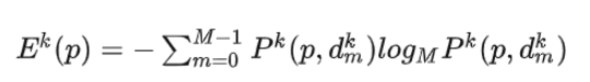 As shown above, E represents entropy, k represents a current phase, M represents a quantity of depth assumptions of the current phase, P represents a depth prediction probability, p represents a pixel location, and d represents a corresponding depth assumption.
