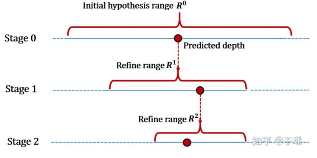 The ER module may adaptively determine, according to a depth prediction status of each phase, an appropriate depth assumption range of a next phase, so as to further refine depth prediction precision, and avoid cases where a true value is incorrectly excluded from the depth assumption range.
