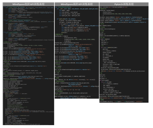 August 12, 2022 1. Overview This blog describes how to convert the PyTorch source code into MindSpore low-level API code and implement single-server single-device training on Ascend processors. The following figure shows the differences between the training processes of MindSpore high-level APIs, low-level APIs, and PyTorch.