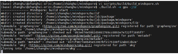 Run the ./build.sh -e gpu -j12 command to start compilation.