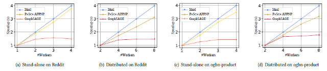 According to the experiment result, the GNN model with the scalable architecture paradigm is found, which has good scalability in distributed training. When the number of workers increases, the model can obtain the almost ideal linear acceleration. Therefore, the model is more suitable for graph data training in large scale.