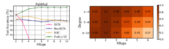In addition, the accuracy of the search model is slightly improved compared with that of the best baseline. The scalability of the search model is also better. As the model deepens, the number of aggregation times increases. Due to over-smoothing, when there are more than two layers, the accuracy of models such as GCN decreases, while the accuracy of the scalable search model increases within a certain range and remains unchanged.