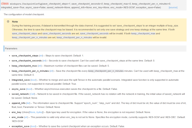 The exception_save parameter (bool type) controls the new resumable training function added in MindSpore 1.7.0, but the official document does not specify its application scenarios. See the following figure.