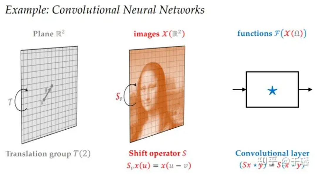 It can be seen that any neural network is a symmetric equivariant mapping. Another important conclusion about equivariance is that: equivariance = coordinate independence + weight sharing. For example, the equivariance of a CNN may be considered as spatial position coordinate independence, and the weight is shared in spatial translation with reference to the convolution kernel. The observation of the feature field deepens people's understanding of equivariance and is important for designing neural networks in more general spatial structures, such as curved spaces. We will briefly introduce how to perform convolution on Riemannian manifolds later.