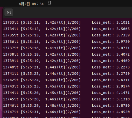 Due to limitations on a single device, the training has not finished after about 12 hours.