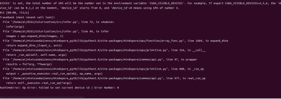 Check the code. It is found that the value of device_id is set to 1. However, given that there is only one GPU card, change the value to 0.