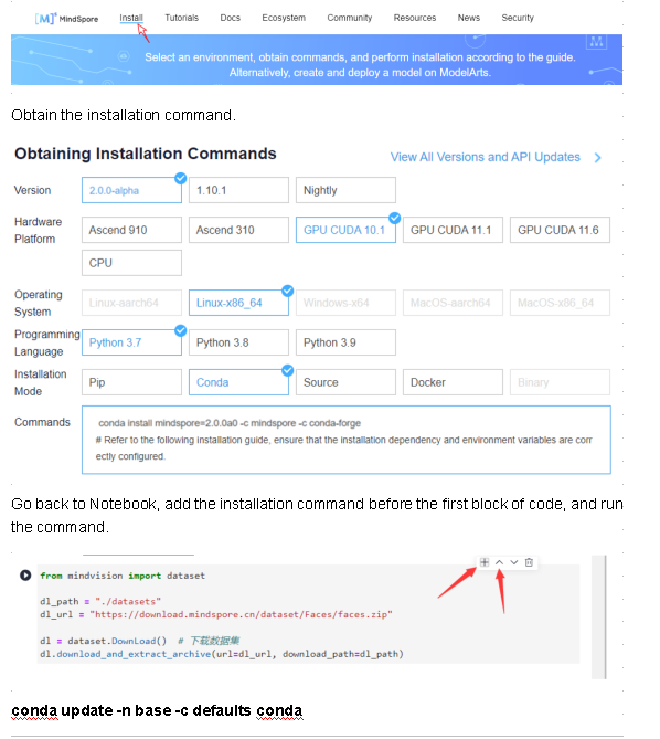 Go to the MindSpore official website and click Install in the upper menu bar.