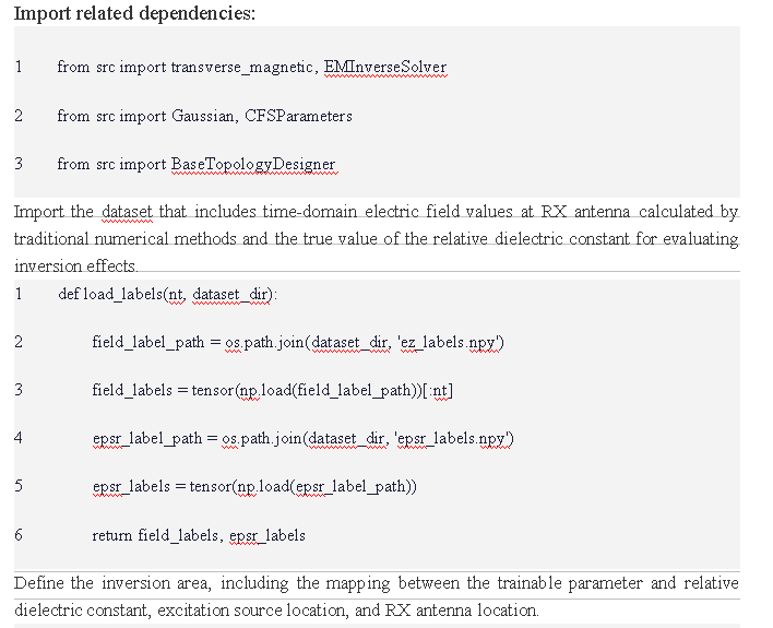 By using APIs provided by the code package, you can establish a complete optimization process for electromagnetic inverse scattering as follows.