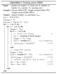 Objective: Describe how to use a dedicated hardware system (such as p-bit) to effectively train sparse deep Boltzmann networks. In computationally hard probabilistic sampling tasks, these hardware systems provide orders of magnitude improvement over commonly used software implementations.