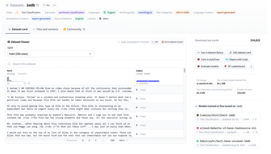 Figure 3 HuggingFace Dataset, with IMDB as an example