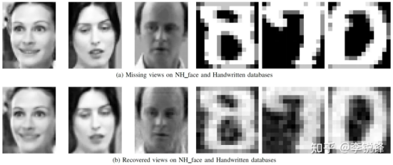 Figure 2 Missing views and their recovery results on Handwritten and NH_face datasets