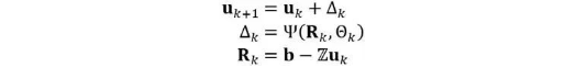Physics-informed supervised residual learning (PhiSRL) is proposed as a general deep learning framework for EM modeling[2]. PhiSRL uses deep neural networks (DNNs) to learn the update function of the unknown in the matrix equation through residuals and iteratively modify the unknown until convergence. In the framework of residual learning, the _k_th update equation during the iteration is as follows: