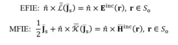 For perfect electric conductor (PEC) media, the equivalent surface current can be described by the electric-field integral equation (EFIE) and magnetic-field integral equation (MFIE):